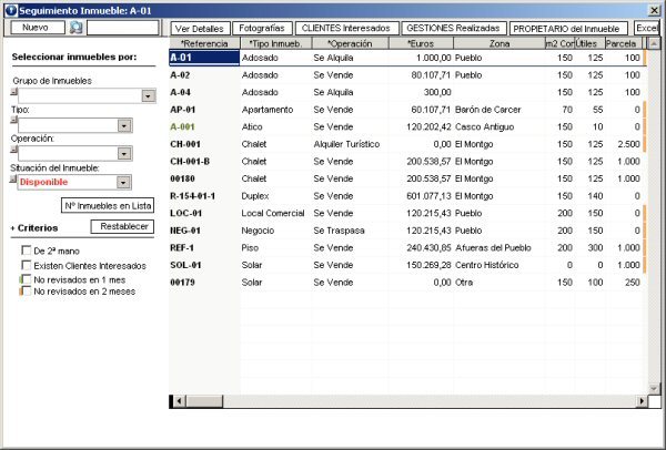 Todas las viviendas que forman parte de tu cartera son listadas con información que estará presente en la ficha individual de cada una de ellas. Aplicando filtros de datos es posible realizar búsquedas precisas dando al instante con el tipo de inmueble que está buscando el cliente en cuestión cuya cita podrás haber concertado previamente haciendo uso de la agenda-calendario.
